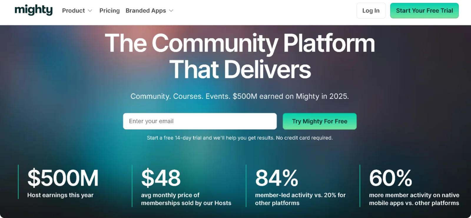 Mighty Networks offers a 14-day free trial with no credit card required. Paid plans start at $95 per month for the Launch plan when billed monthly.